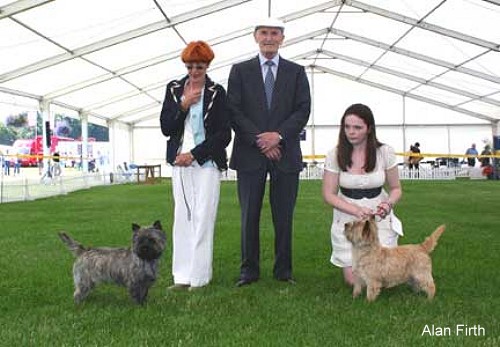 MPD (4,1 a) I Downie & Tate's Jaeva Face The Music, promising head, nicely placed eye & ear, clean bite, well boned front, good neck & shoulder, very good topline & tailset, shapely quarters, well bodied for age, moved freely. BP; 2 Peers'Tweedisle Krazy Koot, nice type, good head & expression, clean bite, good front & quarters, very good topline, good coat texture, sound movement; 3 Coffell's Ometto Made You Look. PD(3) I Felters & Rumens' Landbuck Colour Code, good type. quite promising, well balanced head, very good bite, ears used well, sound front, good neck & shoulder, good topline, correct tailset, nicely bodied, coat showing much promise, shapely quarters, moved well; 2 Peers' Tweedisle Krazy Koot; 3 Percy's Landbuck Colour Scheme. JD (7,2) I Newton's Strathinver Such A Star, good type, scored well in movement, well placed eye & ear, good pigment & clean bite, sound front & quarters, good neck, shoulder & tailset, good coat texture, sound on the move; 2 Mara's Tanteazle Tailor Cut, balanced head, good expression, good pigment & bite, well boned front, very good neck, well laid shoulder, nicely bodied, coat of good texture, moved & handled well; 3 Moseley & Inett's Spawyche Elizabethan Onyx. PGD (3,2) I Peers' Tweedisle Guy Mannering, of good type, well balanced, very good expression, good eye & clean bite, scored well in body, level backline, good tailset, sound legs & feet, in good coat & condition, moved well. LD (8,1) I Short's GlenchessAII In The Stars, well balanced all through, quality head, good eye pigment & bite, very good front & quarters, good neck, well laid shoulders, sound topline, good tailset, put down in good coat & condition, moved & handled to a good standard. CC & BOB; 2 Grainger's Devil In Disguise, good breed type, ears used well, good eye & bite, sound front, well turned quarters, good neck, shoulder & topline, correct tailset, very good coat & condition, moved well; 3 Copley's Cloverbrook Play The Game. OD (6.2) I Watson's Fieldron I've Got News For You, good type, nicely placed eye & ear, good pigment & bite, sound front, good brisket, shapely quarters, good neck, well placed shoulder, good topline & tailset, good coat & condition, moved & handled well. RCC; 2 Jones & Firth's Caringold Jackpot, very good type, quality head & expression, good eye & clean bite, nicely boned front, sound quarters, well laid shoulder, very good outline, correct tailset, nicely bodied, good coat texture, moved soundly; 3 Middlehurst's Zaiazar Un Zipped at Starveren. MPB (6.1) I Wren's Larchlea Spirit In The Sky, quite promising, very good expression, good eye & ear, clean bite, front & quarters developing well, clean neck, well placed shoulder, sound backline, good tailset, good jacket, moved with confidence; 2 Shannon & Storr's Brenndarcy Button It, balanced head, good expression, sound front & quarters, sound neck & shoulder, very good outline, good tailset, put down well, moved well; 3 Bradshaw's Newfield Just A Chance. PB (10.2) I Bradshaw's Newfield Dawn Spirit, nice type, good expression, ears used well, good eye, sound bite, sound front, forechest developing, well placed shoulders, level topline, good tailset, shapely quarters, very good coat texture, moved well; 2 Burgin's Noncom Lucy Locket, balanced head, good expression, good front & quarters, good neck, topline & tailset, nicely bodied, in good coat, sound movement; 3 Powell's Noncom Mad Madam Mimm at Rosenez. JB (6.2) 1 Shaw's Honeyhall Hide' N Seek, nicely balanced head. Nicely placed eye & ear, clean bite. clean front, very good neck & shoulder, sound topline, well trimmed quarters, well bodied, good coat & texture, positive movement; 2 Wren's Larchlea Light My Fire, good type, good eye pigment & bite, scored in front & quarters, clean neck, good topline & tailset, well bodied for age, moved with purpose; 3 Chambers & Exton's Cairngrove Clever Clogs. PGB (6,2) 1 Bradshaw's Newfield Heather Magic, good type, balanced head, good eye pigment & bite, good front & forechest, scored in neck, shoulder & topline, good tailset, sound quarters, well bodied, good coat texture, moved well in front with drive behind; 2 Peers' Tweedisle The Golden Touch, pleasing head & expression, good eye, ear & bite. well boned front, sound quarters, well bodied, very good topline & tail, very good coat texture, moved well; 3 Confue & Confue's Anjofra Me Me Me. LB (10,1) I Jones & Firth's Cairngold Avin A Paddy, nice type, quality head, good expression, very good eye & ear, good pigment & bite, sound front, well developed quarters, very good neck, well laid shoulder, good topline. good coat texture, moved & handled well. RCC; 2 Oxborn's Tweslam Bonne Annee, pleasing head & expression, ears used well, good eye & bite. Sound front, good forechest, good neck, shoulder & topline, good tailset, mature quarters, in good order, sound both ways; 3 Brennan's Cloverbrook Cayos. OB (6,2) Short's Ch Glenchess Golden Wings, quality exhibit balanced all through, head of very good make & shape, well placed eye & ear, good pigment & bite, scored well in front & quarters, very good neck & shoulder, sound topline & tailset, well bodied, very good coat & lexture, moved & handled as one.CC; 2 Osborn s Tweslam Izzy Wizzy Get Bizzy. good type. well balanced head, very good eye, ear pigment & bite, well boned front, sound quarters, good shoulders topline & tailset in very good coat & condition, sound on the move; 3 Shaw's Honeyhall Headstrong.
