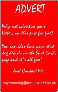 Advertise Your Litter Contact: tonymanning@terrierworld.co.uk IMPORTANT NOTICE:
